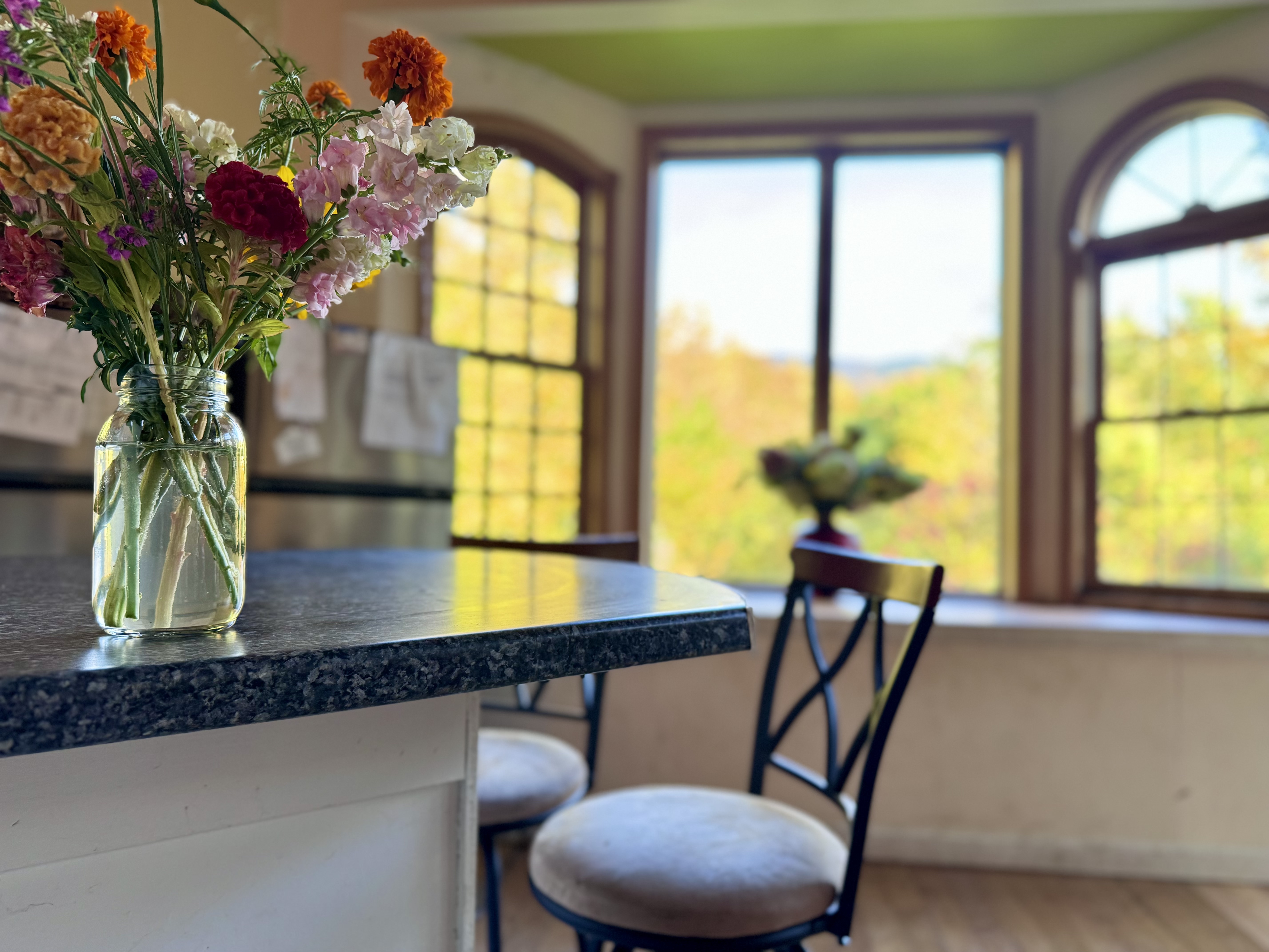 The home's 2200 square feet offers a great blend of family gathering space and privacy. The first floor's open floor plan with ten-foot ceilings and panoramic windows on two sides is complemented by four private rooms on the second floor, including a master bedroom with mountain views.
