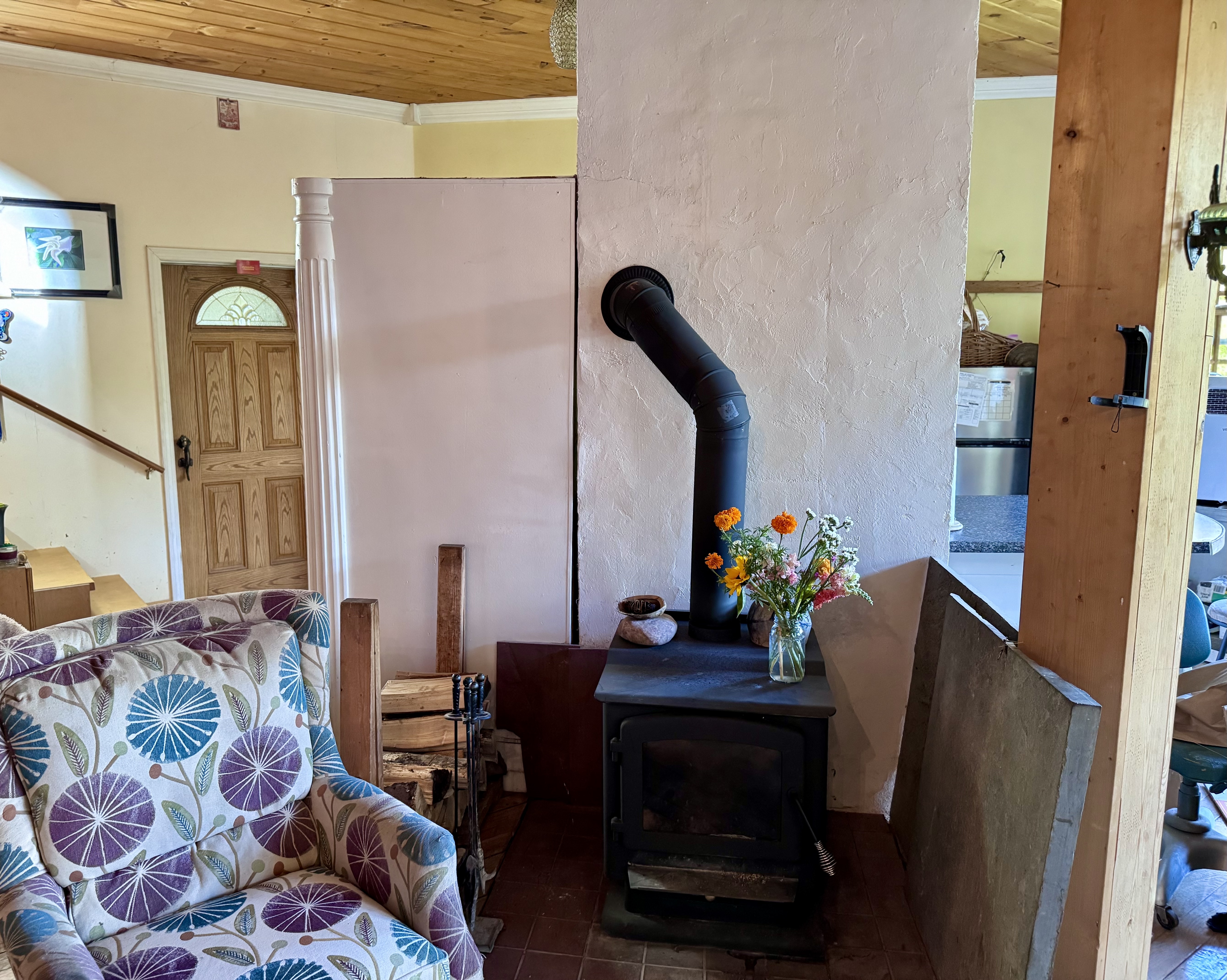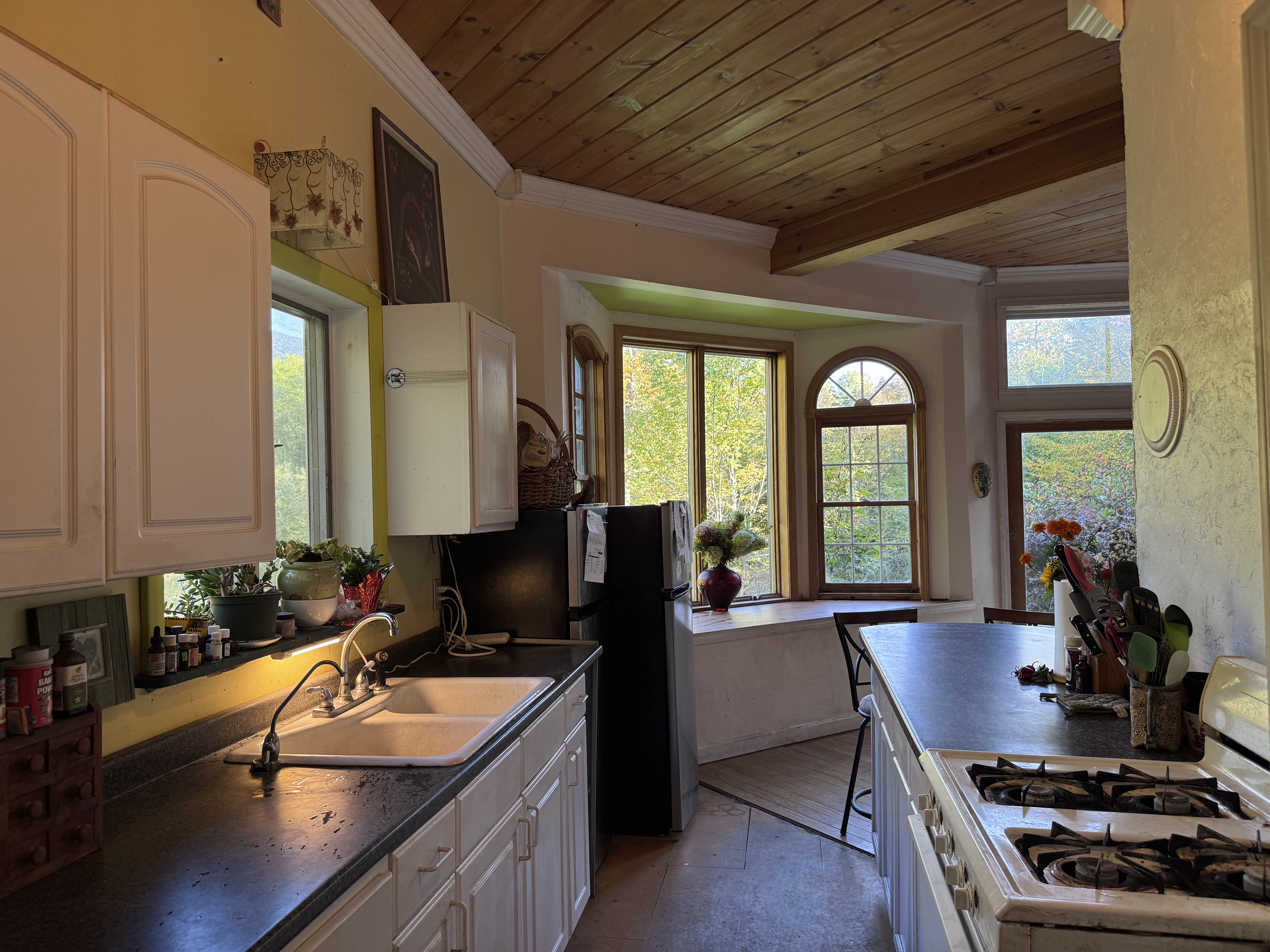 Three other outbuildings (1,500 sq ft workshop, wood shed, and chicken coop) provide opportunities for country living, with animals, and a home business. You'll be self-sufficient because onsite solar powers the home and shop. Never pay an electric bill again.