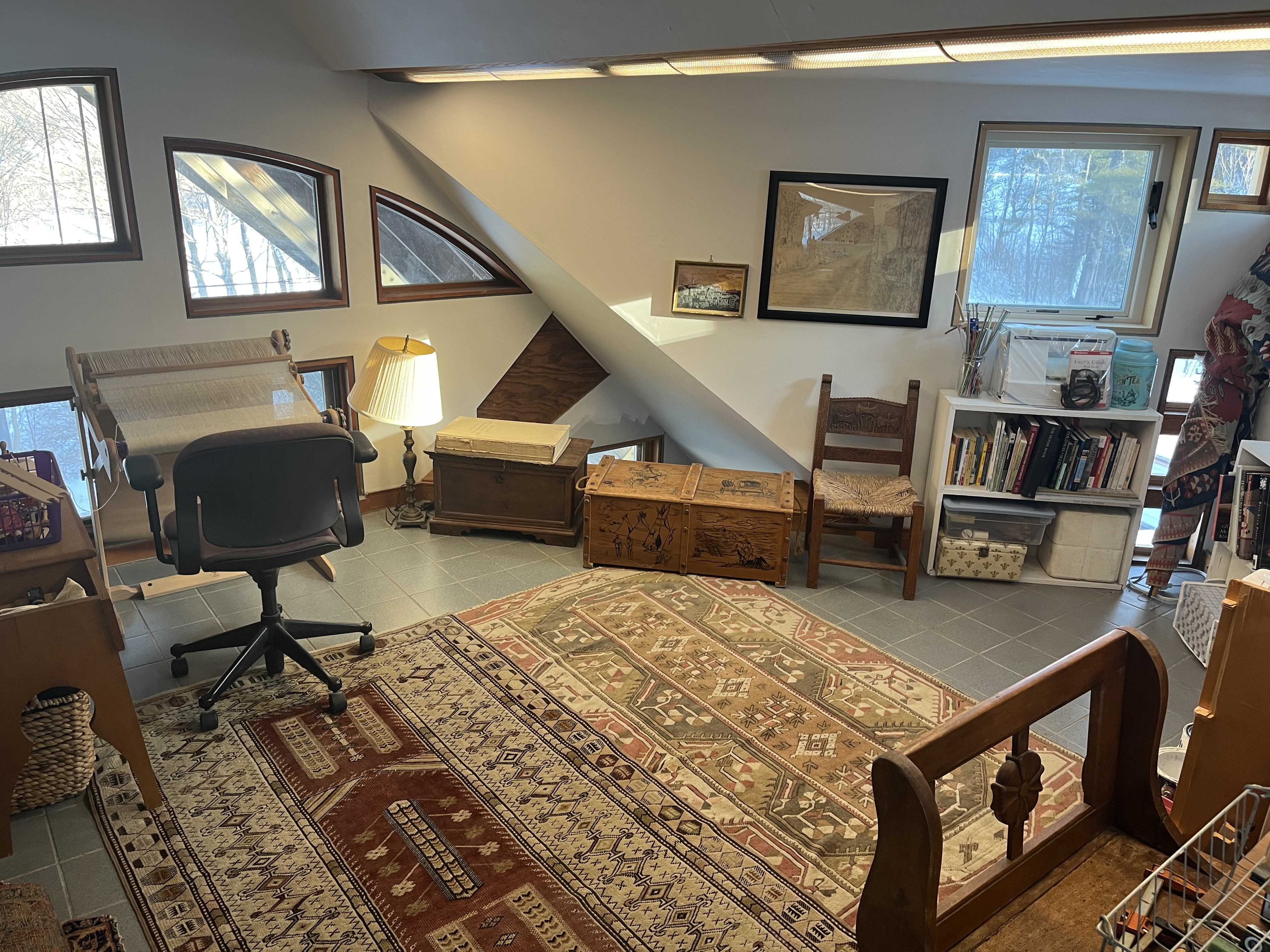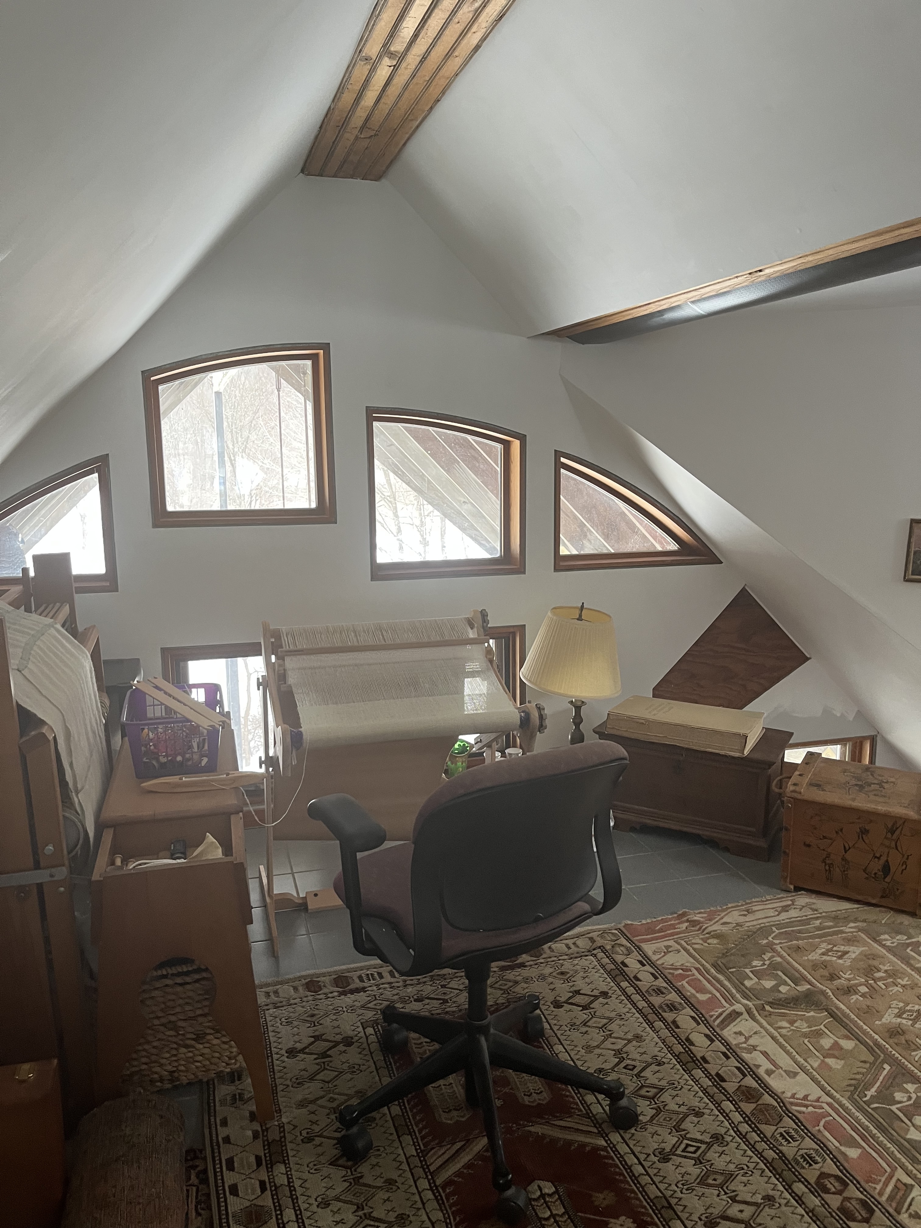 This is a one of a kind house that was built on speculation in the 80s and 90s by Yestermorrow pro students under an architect's supervision. It took many years to complete representing several classes of design students.